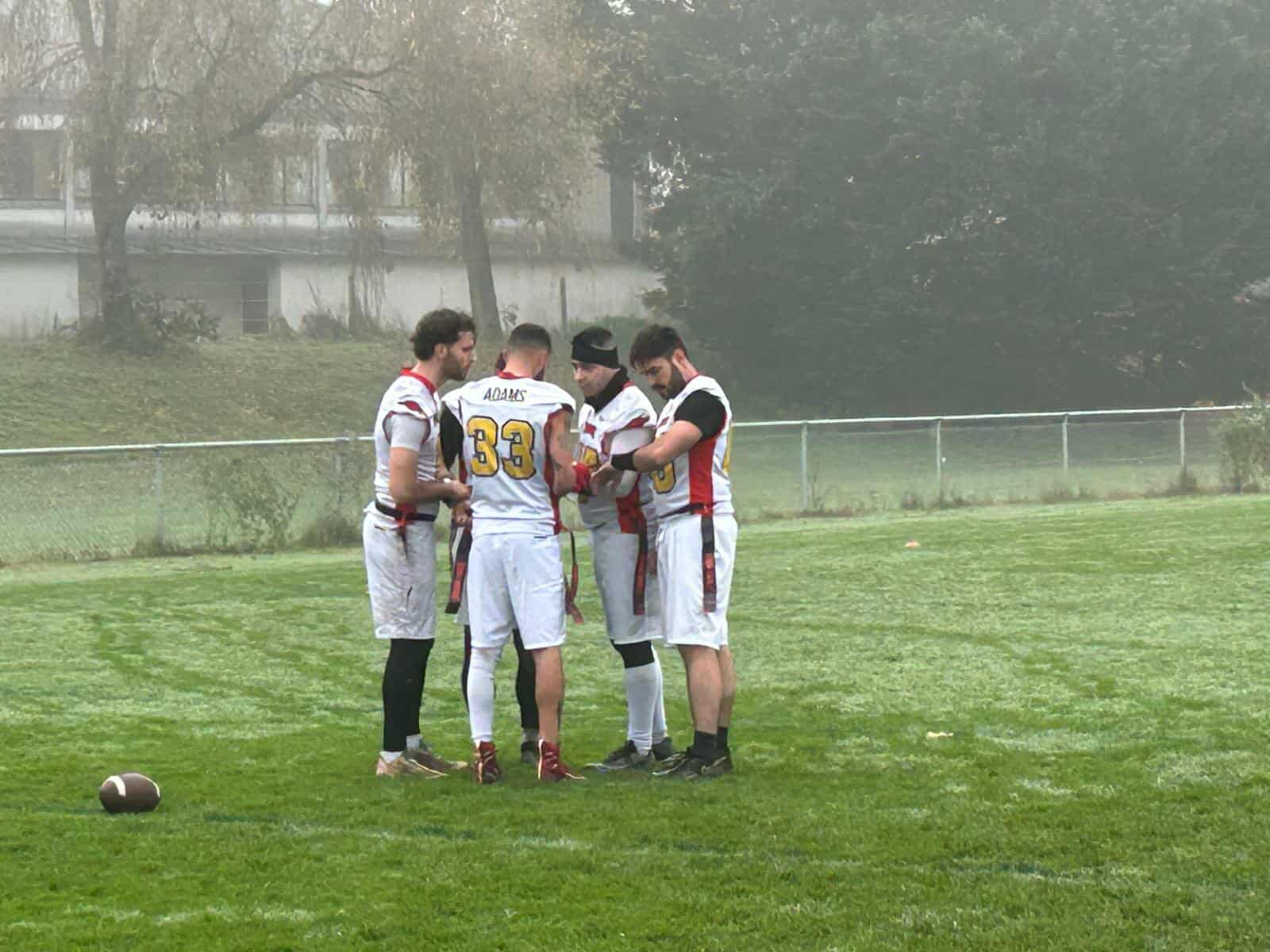 3ème match : Victoire 45-14 vs Sea Devils de la Rochelle. Sans doute le match le plus abouti de la journée. Une prestation quasi sans tache. Il faudra un drive pour se régler et derrière tout va se passer comme dans le meilleur des mondes. Alex Borderie monte les drives, avec Martin Boutonne, Titouan Reisser, Quentin Cros et Cole Gusdegre* (Le nom est toujours modifié,mais c’est le même type) à la réception. Et Martin Boutonne met le clou sur le cercueil avec pour le coup, une cible favorite au bout de ses passes : Georges Leduc*(Toujours la même personne mystère, mais je commence à prendre gout au truc), auteur de 5 TDs. Il faut savoir que Geo Dreguels*(Je tiens à souligner que tout est fait sans l’IA, je suis donc : trop fort) a un vieux contentieux avec la ville de la Rochelle. Il a des soucis de co-propriété avec l’appartement qu’il possède là-bas, ce qui lui créé une rancœur tenace envers toutes les équipes sportives de la ville, qui fait qu’il se transforme en Calvin Johnson saison 2011 lors de ce match. Côté défensif, l’équipe n’est pas en reste. Grâce à une bonne couverture défensive de Titouan Reisser, Tom Zemouri, David Ple-Surenthiran, Thomas Dufraisse et un gros travail en rusher de Alex Borderie puis Raphael Pardoux, le QB des Sea Devils prend la marée et lance quelques ballons hasardeux. Et le hasard avait un nom sur ce match, celui de Xavier Viseur. 4 interceptions pour notre safety made in Pas de Calais. Qui aura plus de temps à comprendre les règles du flag qu’à réaliser cette magnifique performance défensive.
